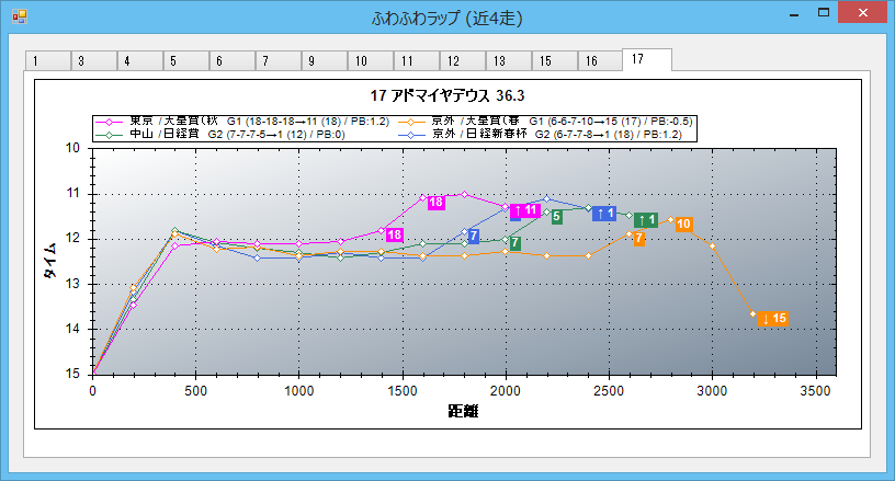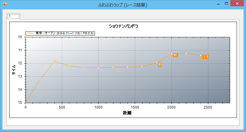 レース結果から1頭をピックアップし、ラップを推測・表示します。